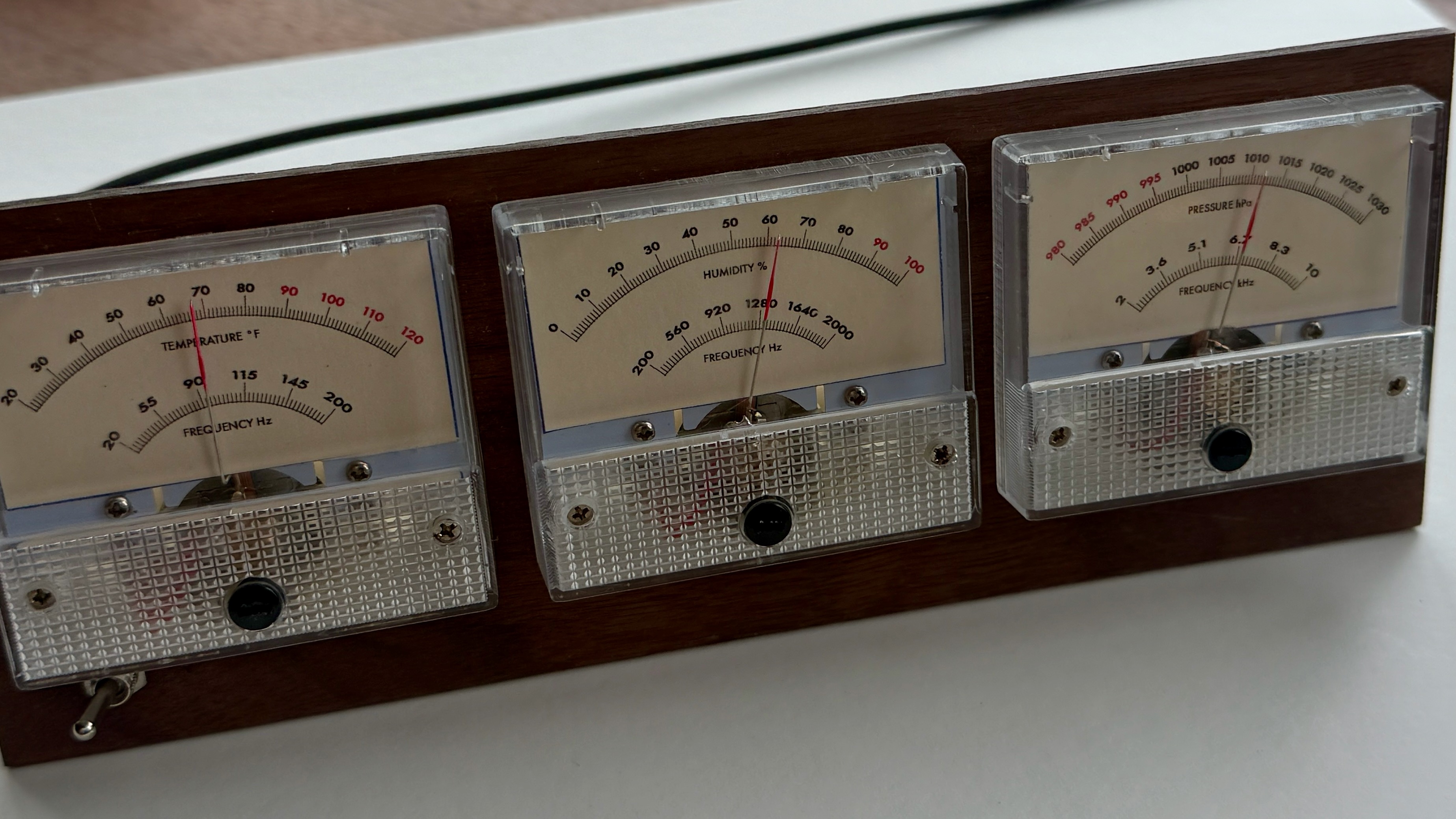 Climate Mode: With the flick of a switch, The Analog Station displays temperature, humidity, and barometric pressure.